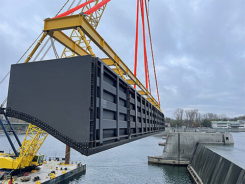 Dafür wurde ein 138 Tonnen schwerer Tunnel unter Wasser getaucht und am